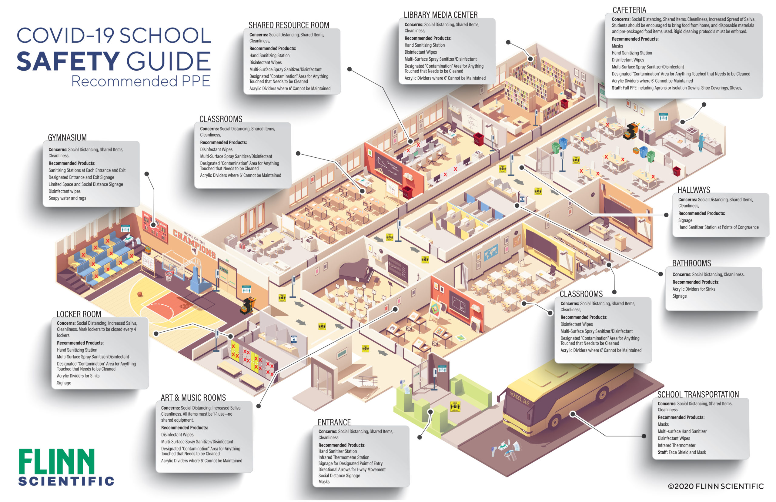 1. The definition of PPE has expanded. Most people were focused on masks, gloves, hand sanitizer and “deep cleaning” at the outset of the pandemic. The spectrum of PPE in schools has grown to include partitions, safety signage, air filters, UV lighting and electrostatic sprayers, Kleinfelder says.