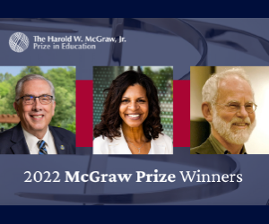 Nominations for the 2023 prize open on Thursday, November 3 at mcgrawprize.com. A nomination for the McGraw Prize may be submitted on behalf of any person who meets the nomination criteria. The Prize recognizes outstanding individuals who have dedicated themselves to improving education and whose accomplishments are making a difference.